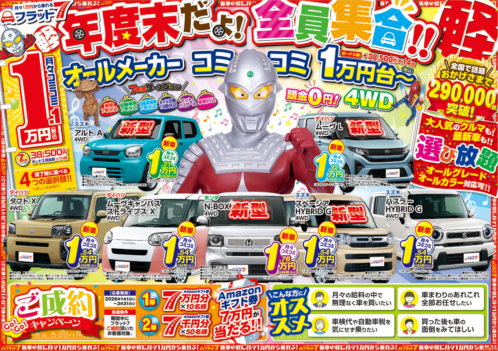 人気の5車種が月々コミコミ19,800円!(頭金、ボーナスなし)